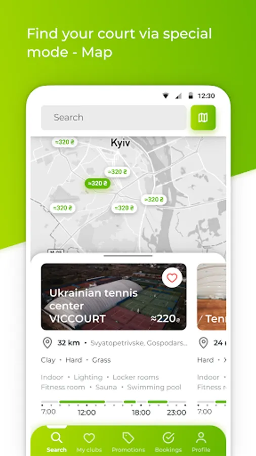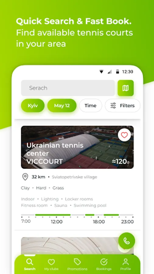 Would you like to book tennis courts without calling to clubs for available courts at the time which is convenient for you? With the Book4Sport application, in any time you can quickly find and book free tennis courts in clubs throughout Ukraine.