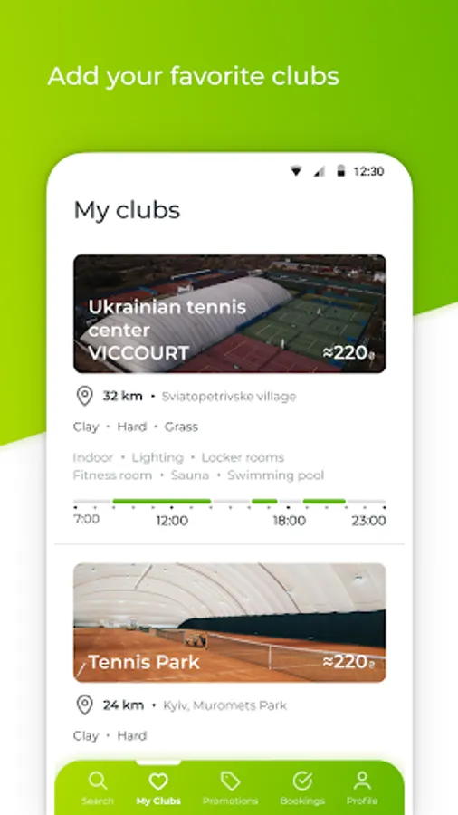 - promotions, special booking prices and other services from the tennis clubs for Book4Sport users only.