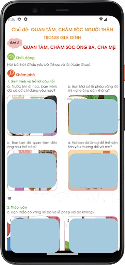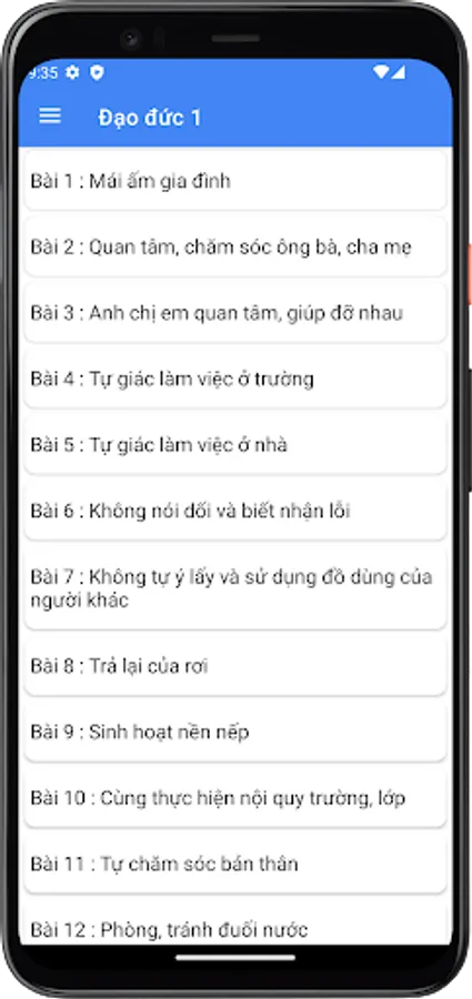Lesson 1: The home of the family Lesson 2: Caring for grandparents and parents Lesson 3: Brothers and sisters care and help each other Lesson 4: Self-discipline to work at school Lesson 5: Self-discipline to work at home Lesson 6: Don't lie and admit mistakes Lesson 7: Do not arbitrarily take and use other people's belongings Lesson 8: Returning dropped items Lesson 9: Regular activities Lesson 10: Comply with school and class rules Lesson 11: Take care of yourself Lesson 12: Prevent and avoid drowning Lesson 13: Prevent and avoid accidents in daily life Lesson 14: Prevent and avoid traffic accidents