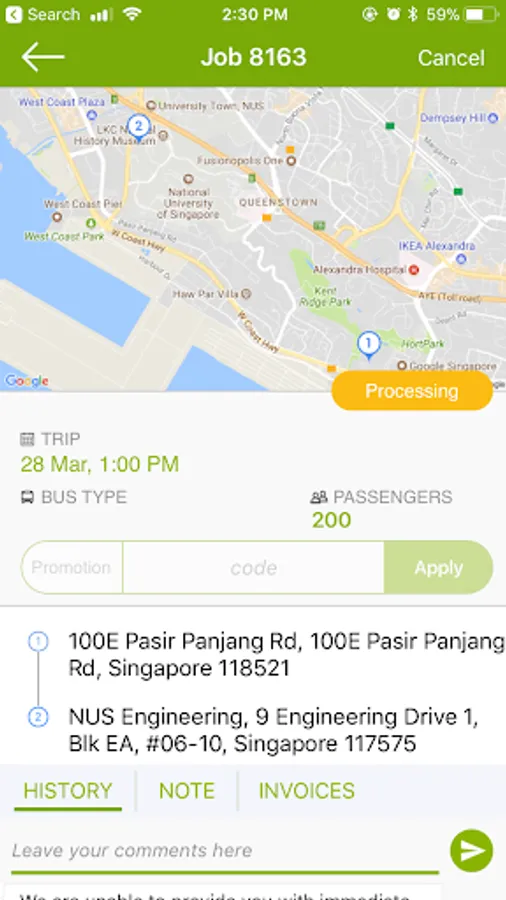 Enquiry, price, payment, confirmation, contact points are all processed and documented within one job order in the app. Our process structure is designed in an interactive and less formal flow that allows for more information to pass 2-ways between user and our staff.