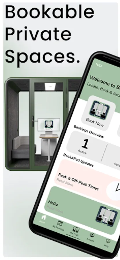 Looking for a private space to work, meet, create, study, call, or just relax? Look no further than BookAPod! Our revolutionary app makes it easy to locate, book, and access a private, soundproof workspace pod on demand.