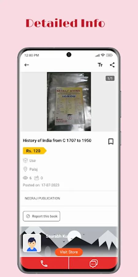 The app's user interface is intuitive and easy to navigate, allowing users to quickly browse and search through a vast library of used books. Once a user finds a book they are interested in, they can initiate a chat or call with the seller to discuss the book's condition, price, and other details.