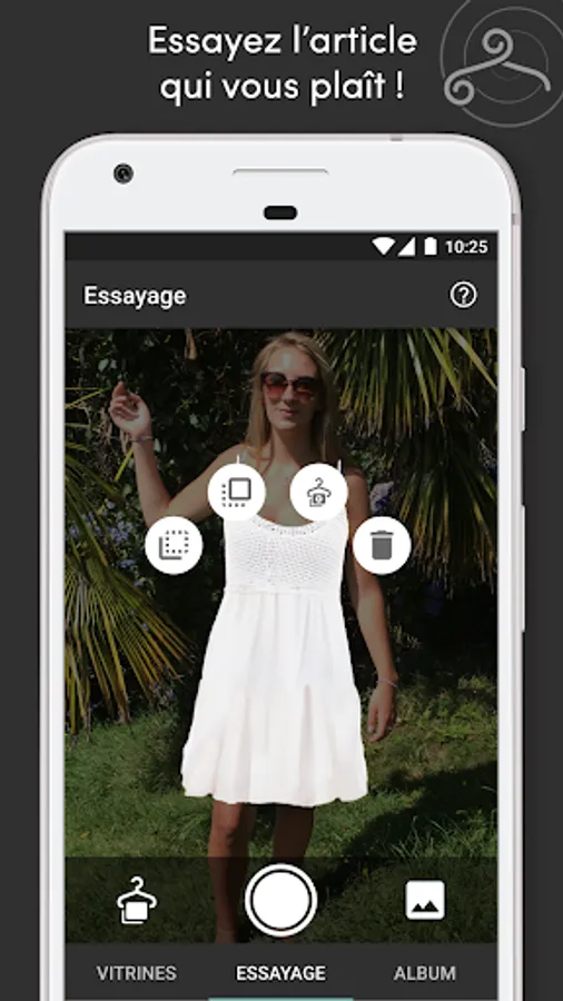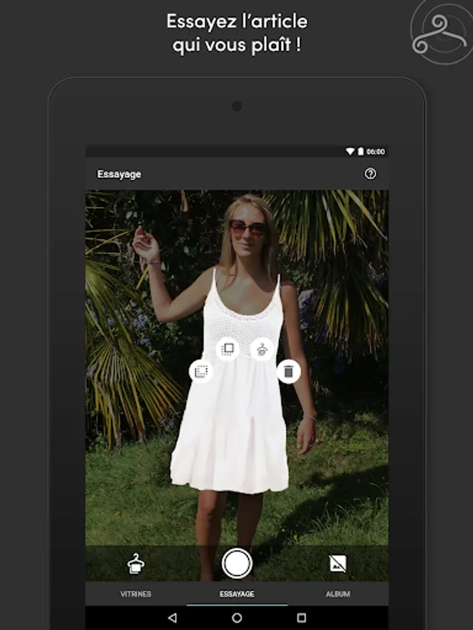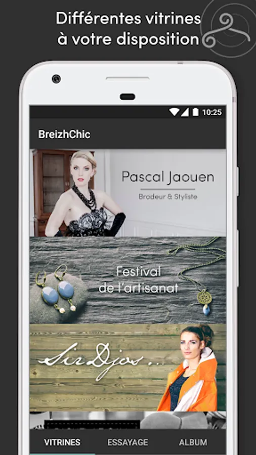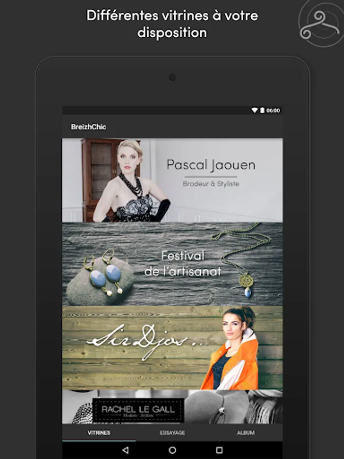 Slide of a showcase to another in BreizhChic application. Try costumes, hats, caps, dresses, directly on a person or a picture of your album.