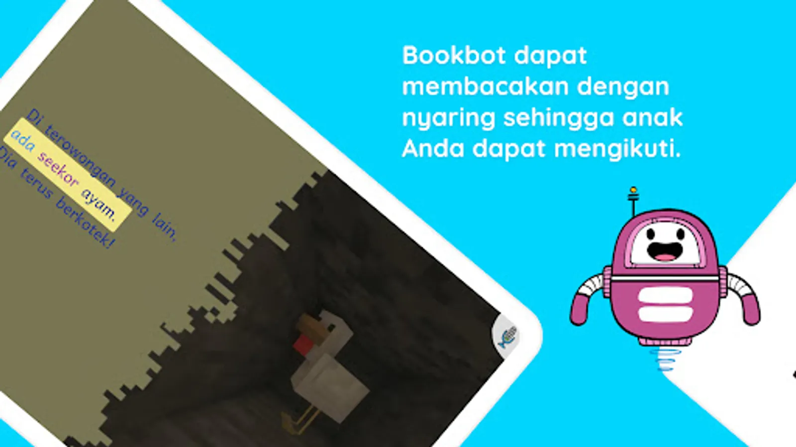 Your child has difficulty reading? Don't worry! Now there is Bookbot Indonesia: Children's Phonics Book – a virtual reading assistant that will listen to children reading and guide them, step by step. Your child will be happier and more fluent in reading.