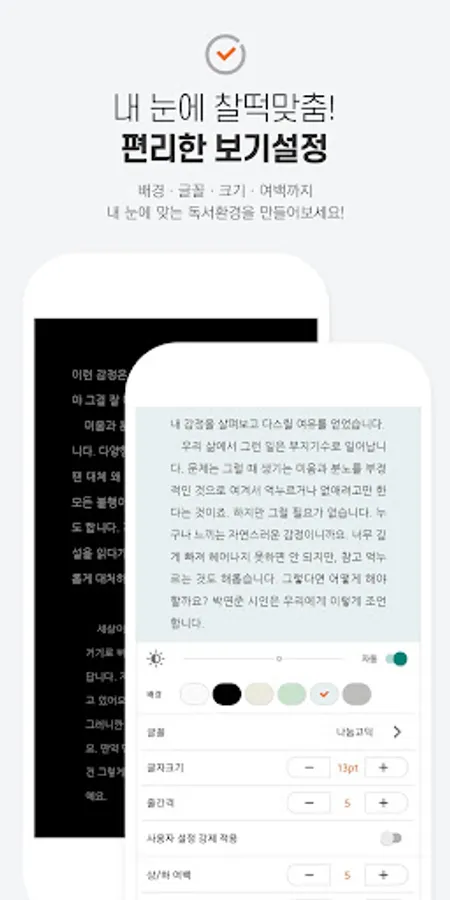 -Optimized reading environment settings such as screen brightness, font size, font, background color, and margin