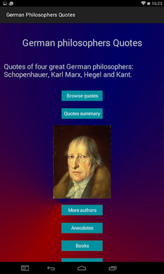 Quotes of four great German philosophers: Georg Wilhelm Friedrich Hegel, Arthur Schopenhauer, Karl Marx, Immanuel Kant