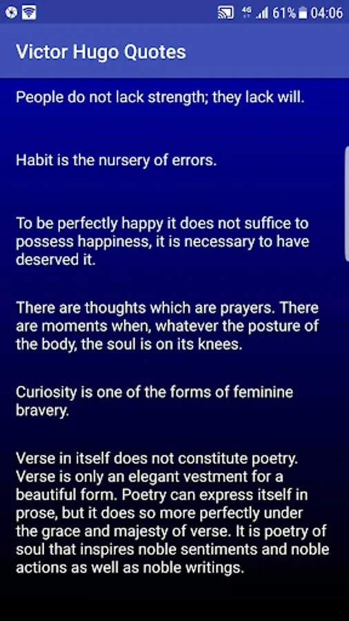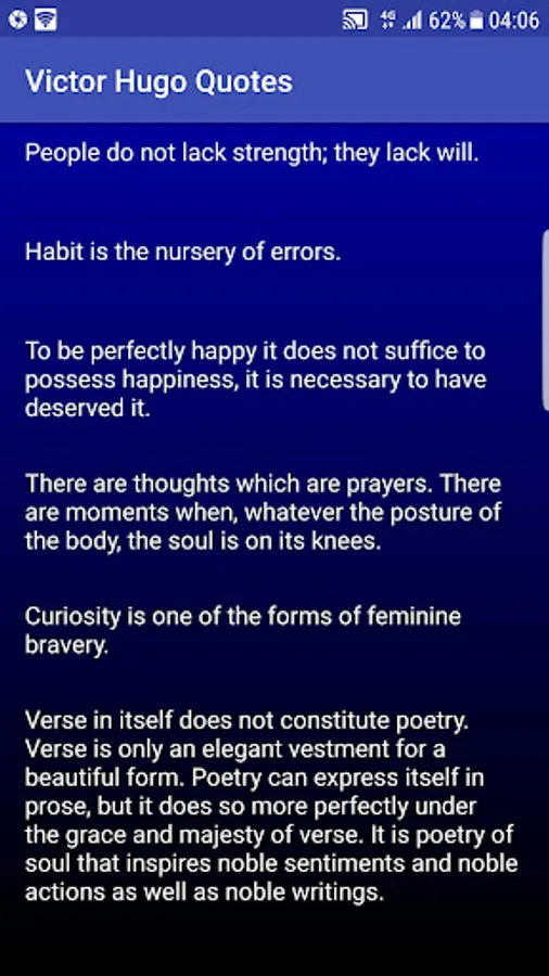 Victor Marie Hugo (26 February 1802 – 22 May 1885) was a French poet, novelist, and dramatist of the Romantic movement. He is considered one of the greatest and best known French writers. In France, Hugo's literary fame comes first from his poetry but also rests upon his novels and his dramatic achievements. Among many volumes of poetry, Les Contemplations and La Légende des siècles stand particularly high in critical esteem. Outside France, his best-known works are the acclaimed novels Les Misérables, 1862, and Notre-Dame de Paris, 1831 (known in English as The Hunchback of Notre-Dame). He also produced more than 4,000 drawings, which have since been admired for their beauty, and earned widespread respect as a campaigner for social causes such as the abolition of the death penalty.