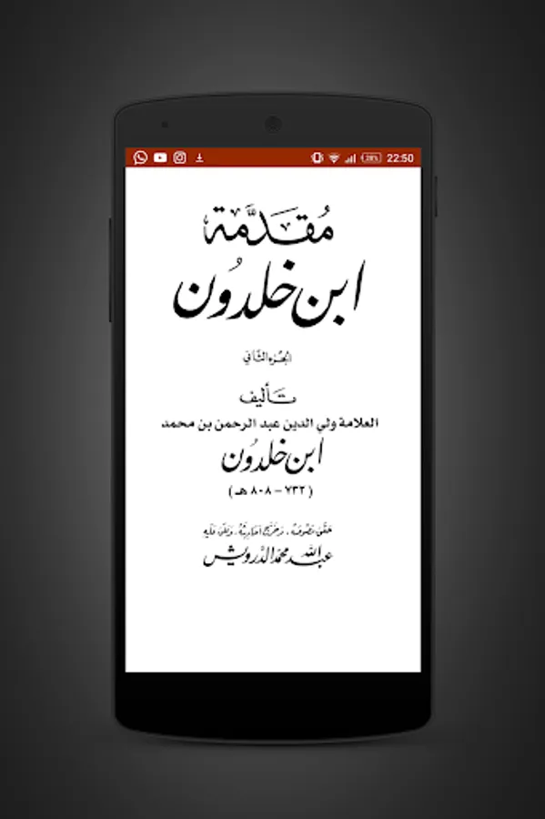 Introduction of Ibn Khaldun - the second part of the most frequently discussed parts. The section is concerned with a simple explanation that reveals to us the initial vision that pushed Ibn Khaldun to lay the foundation stone for his introduction, as the fourteenth century for Ibn Khaldun and his contemporaries was the letter of the abyss and revealed its perfection and political, social and cultural stability in view of the exit Al-Andalus from Islamic control and civilization disintegration in North Africa, due to the disparity witnessed by civilization there, in levels of development, stagnation, disintegration and cohesion in conjunction with Islamic and European countries and territories, China, India, and others, where their era witnessed the fall of other countries, civilizations, and other states. Explaining the most prominent reasons for his concern that (the world in its time revives a transition of civilization from the south to the north), Ibn Khaldun as a witness of his time sees the Islamic West (his birthplace) swinging between the periods of Andalusian and Western prosperity under the rule of the Umayyads, Almohads and Almoravid