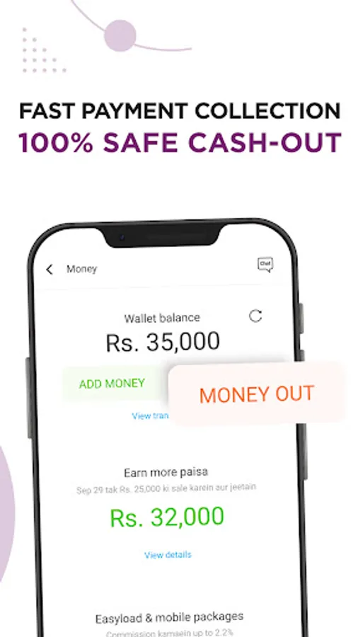 Instant Free Cash Withdrawal 💲: Using our Money out feature in the Wallet you can cash out for free without any fees, anytime using JazzCash, EasyPaisa, HBL, Habib Metro, Meezan Bank, Alfalah Bank, UBL, Allied Bank Limited, Dubai Islamic Bank, and Bank Al Habib etc.