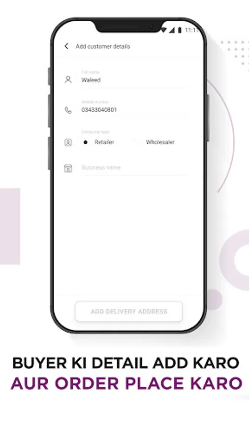 3) Place Orders: After receiving your order on whatsapp etc, use the booker app app to place the order. First add the customer details such as name, mobile number, Pin location, written address, item quantity, and profits etc on the booker app.