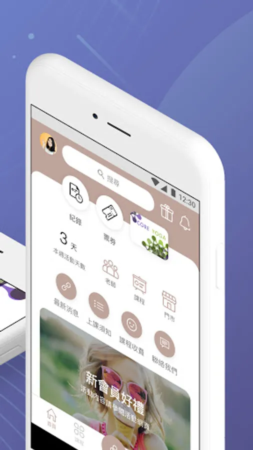 App 內建會員帳號 QR code,輕鬆簽到上課,即時得知最新活動 / 優惠 / 公告訊息,重要資訊不漏接。