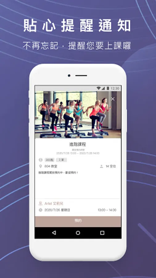 登入會員之後,你將能隨時隨地掌握教室的課表、預約 / 取消 / 課程、設定行事曆提醒,檢視已預約課程!