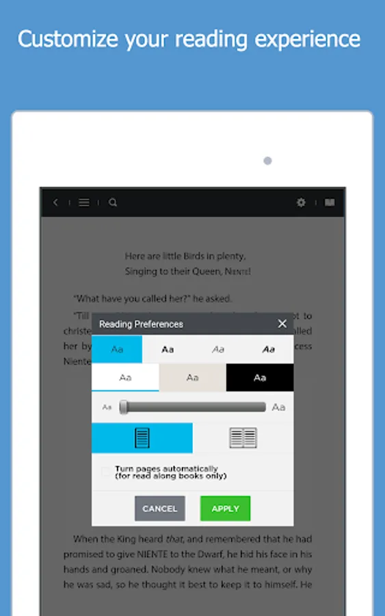 * Sync your reading progress across all devices. Pick up exactly where you left off.