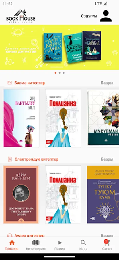 The bookstore "Book House" offers to all its numerous visitors a huge selection: fiction, family and education, psychology, business, self-development, religious literature, children's literature and other genres of books at reasonable prices.