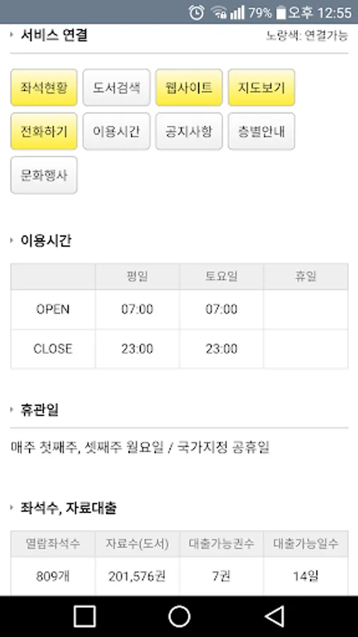 Information from all public and university libraries (book information, seat information, etc.)