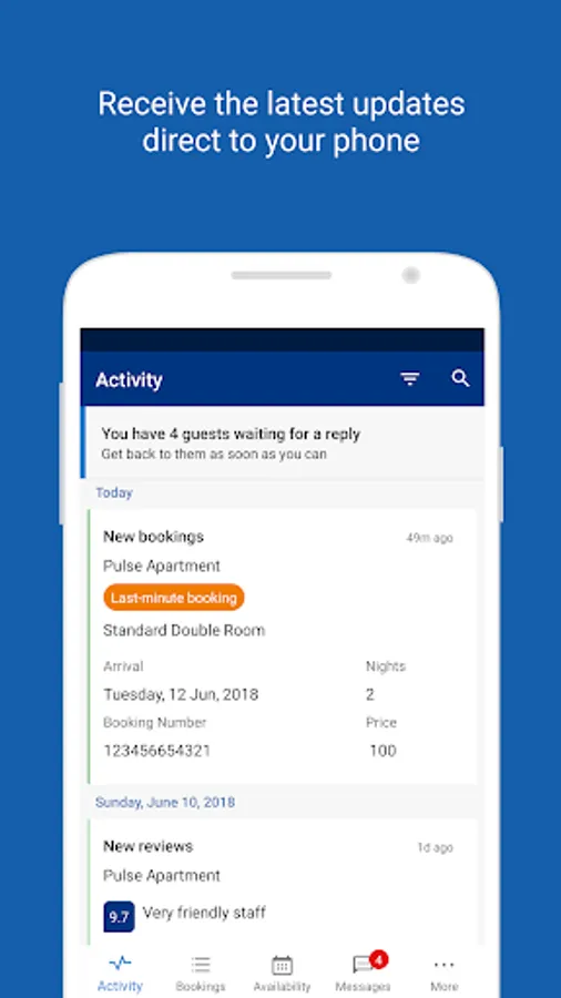 Quickly find, update, and share reservation details with your team, so everyone is up to date. Availability and rates can be adjusted easily to react to guest demand and secure last-minute bookings. Also, uploading new photos directly from your phone can help attract more potential guests.