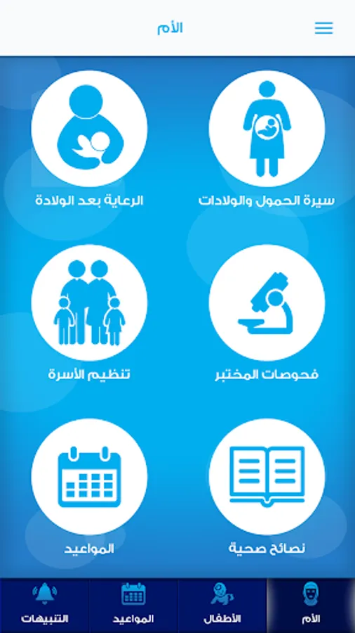 This customized interactive mobile application for UNRWA Palestine refugee mothers has the following main features:
