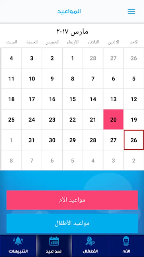 • It sends push notifications to the mother’s smart phone such as appointments’ alerts, text messages, and any other relevant info that she might be in need to be reminded of;