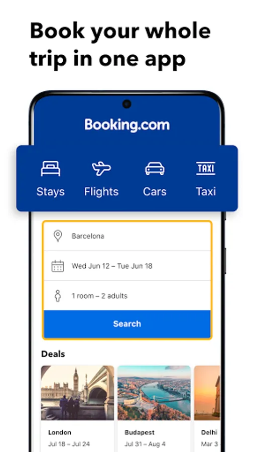 Save on your next trip with the Booking.com app! Find great hotel or apartment deals and book in just a few minutes. You can also book flights, rental cars, and more through the app.