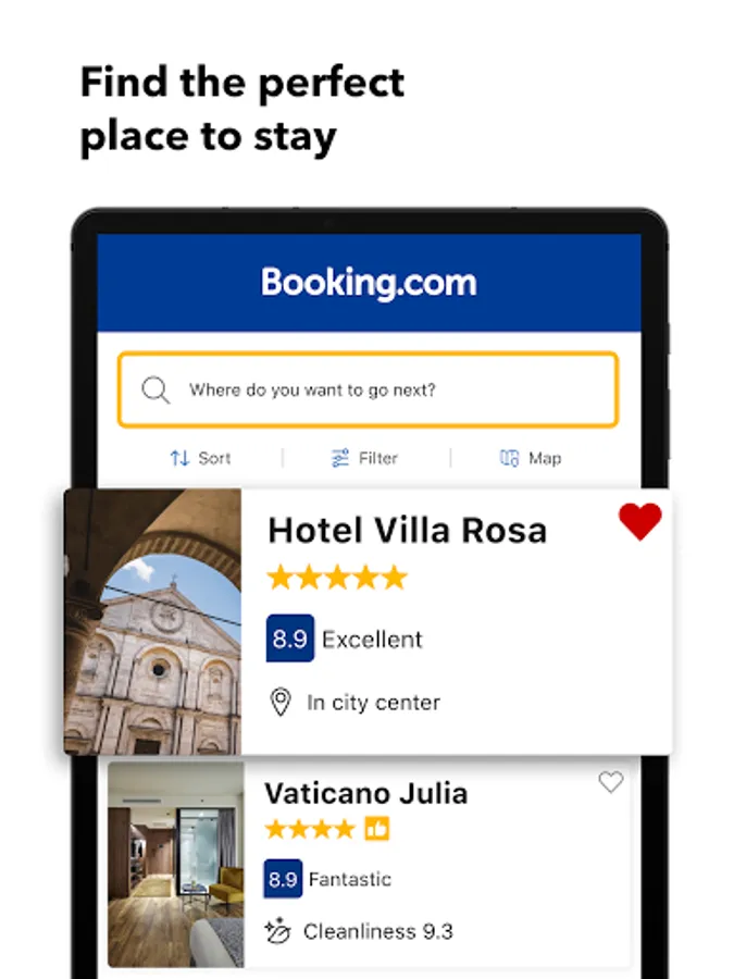 From cozy country homes to funky city apartments, find the perfect place out of millions of available accommodations. Our app offers hotels, apartments, hostels, vacation rentals, resorts, motels, guest houses, and bed and breakfasts.