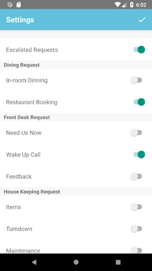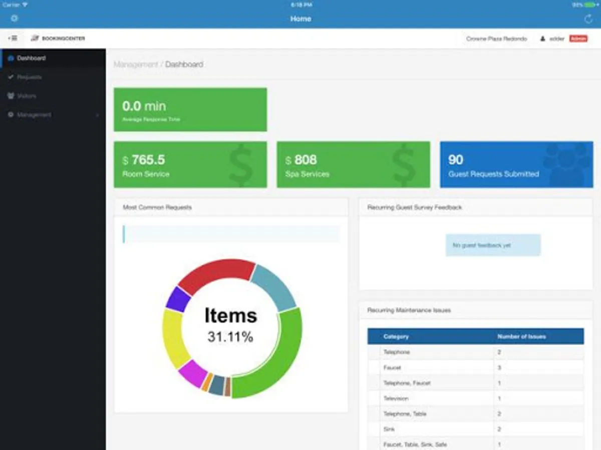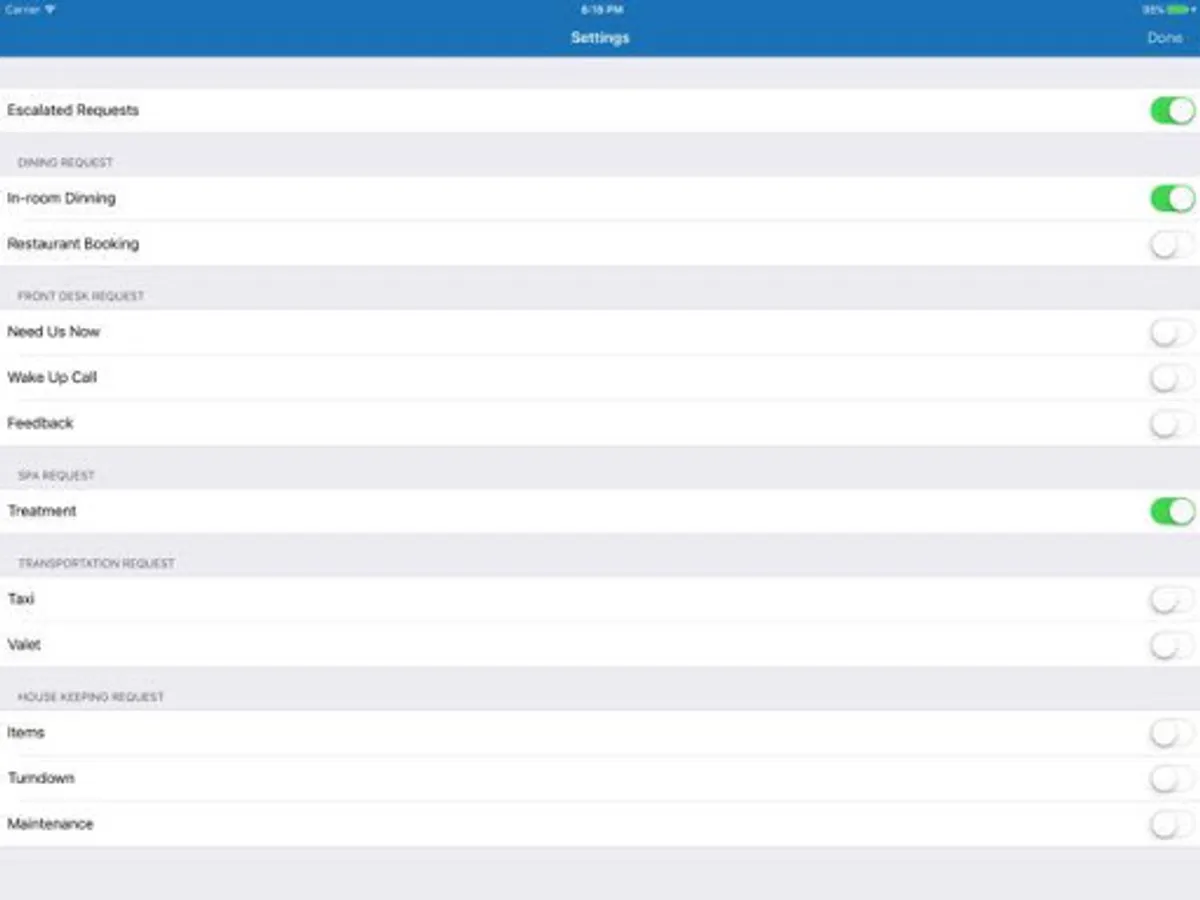 With a live dashboard and push notifications, Requests are tracked and detailed by your staff, meaning requests don't get 'lost'. Each User can be setup with 'notification' rules so that a manager, for example, can be notified if a Housekeeping requests hasn't been fulfilled in 45 minutes.