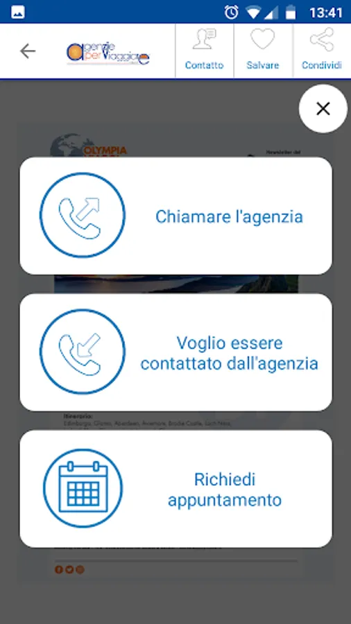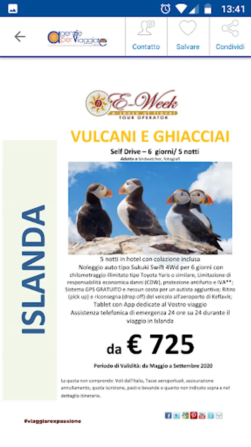 A huge selection of last minute travel deals, bridges, cruises, tours, and more. With a single gesture you can save the offer as a favorite, share it with WhatsApp, in e-mail, in Social Networks, call the Agency or request to be contacted directly by the travel agent