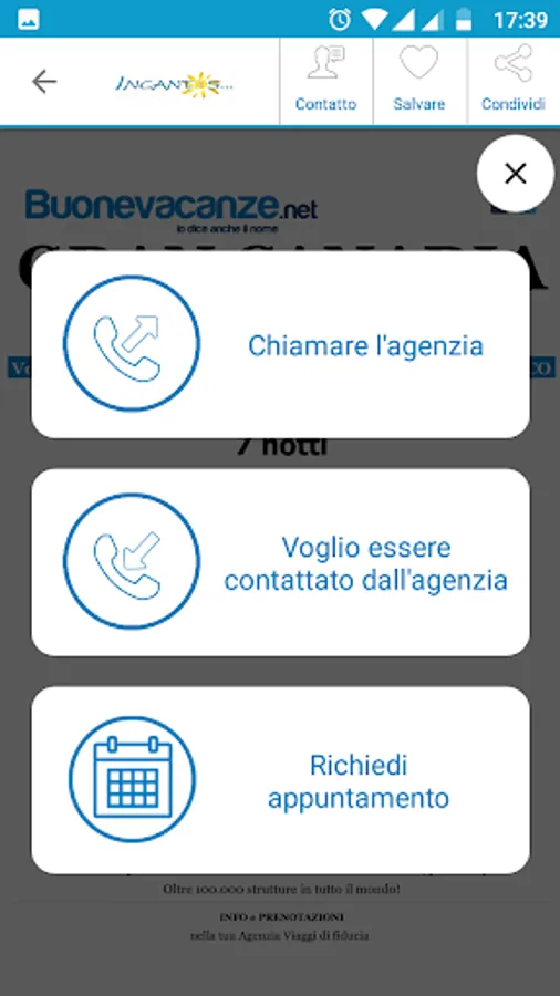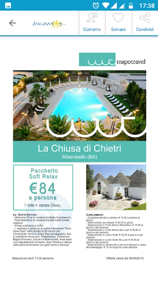 A wide selection of last minute travel deals, bridges, cruises, tours, and more. With a single gesture you can save the offer as a favorite, share it with WhatsApp, in e-mail, in Social Networks, to call the Agency or request to be contacted directly by the travel agent.