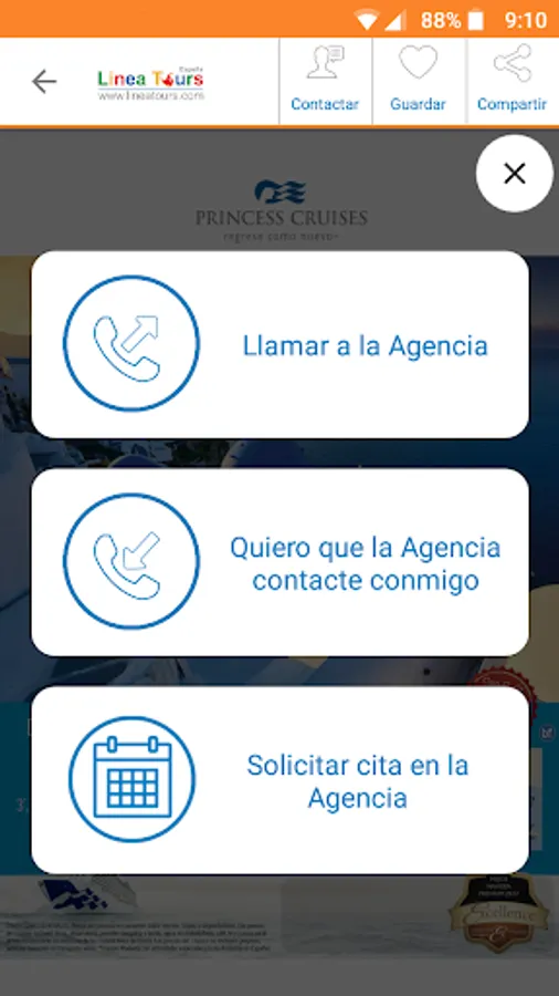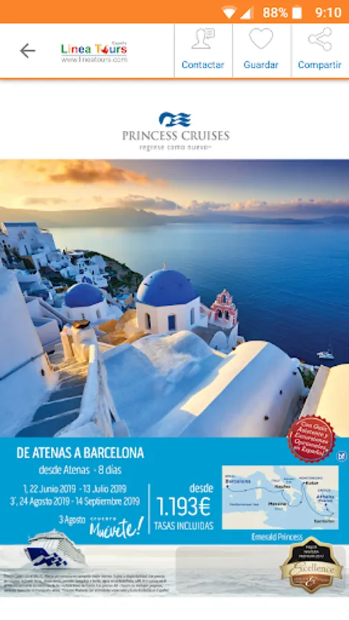 A wide selection of last minute travel offers, bridges, cruises, circuits, and many more. With your only gesture you can save as an offer, share it by WhatsApp, e-mail, etc. and request that an agent call you or call us directly