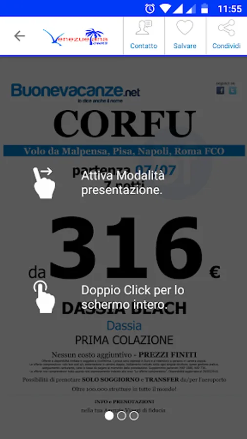 A wide selection of last minute travel offers, bridges, cruises, tours, and more. With a single gesture you can save the offer as a favorite, share it with WhatsApp, in email, on Social Network, call the Agency or request to be contacted directly by the travel agent.