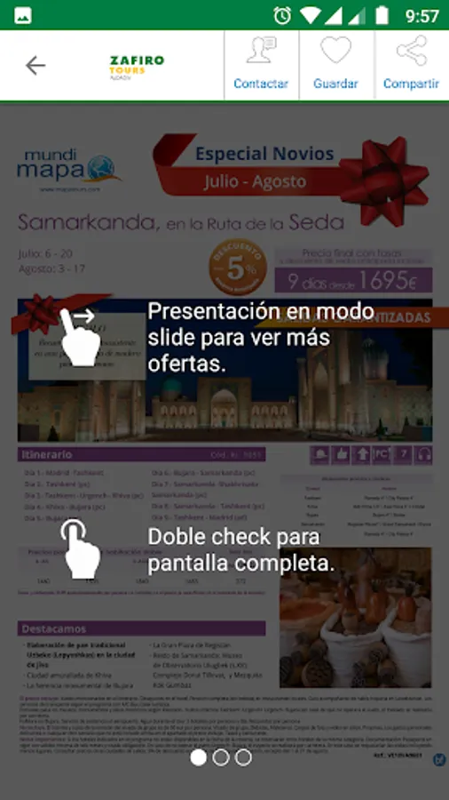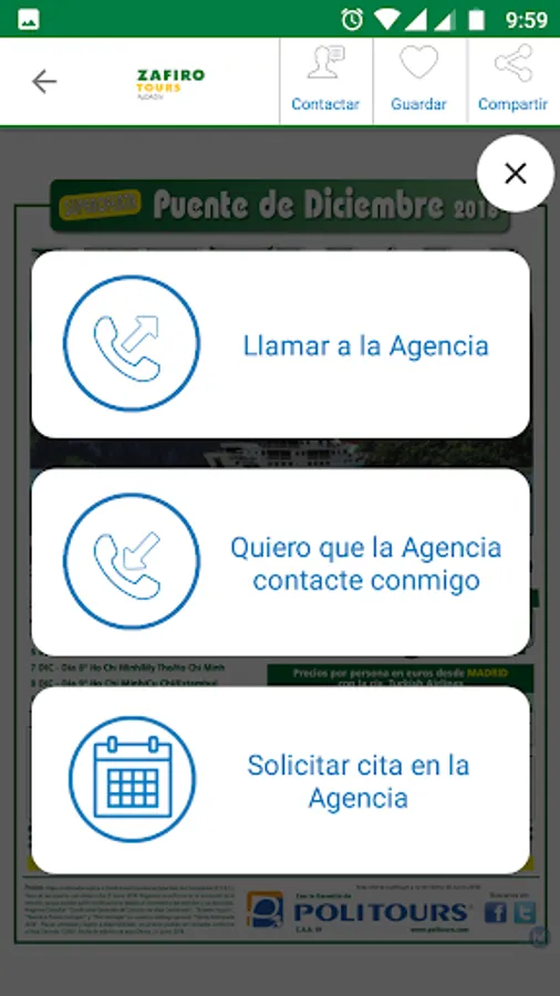 A wide selection of deals last minute, bridges, cruises, tours, and more. With its single gesture you can save as favorite bid, share by WhatsApp, e-mail, etc and request that an agent call you or call us directly.