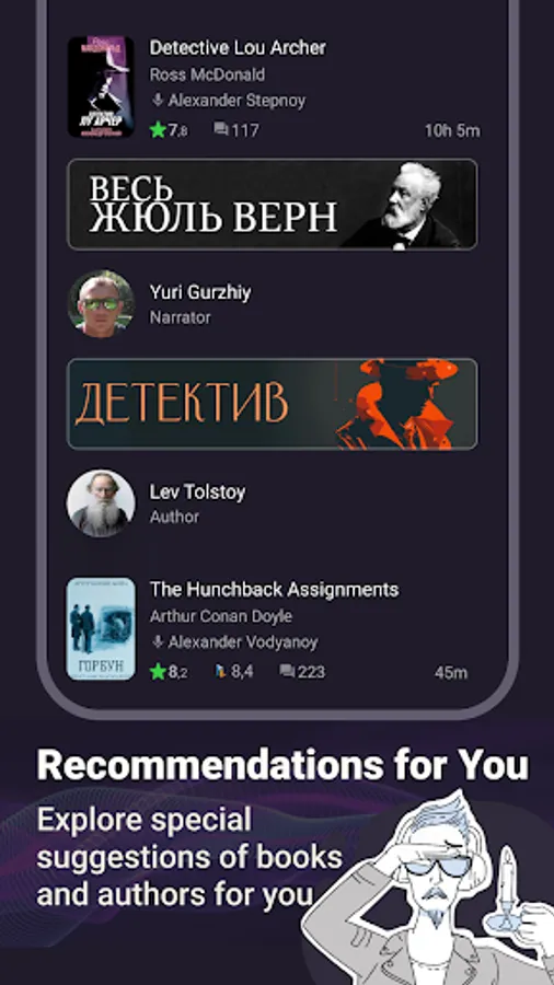 💬 This is not just a collection of books, but a real community. Leave, read reviews and discuss audiobooks not only with like-minded people, but also with narrators and authors (some of them chat with fans). Like a review? Follow the review author or become a literary critic yourself, whose reviews are trusted.