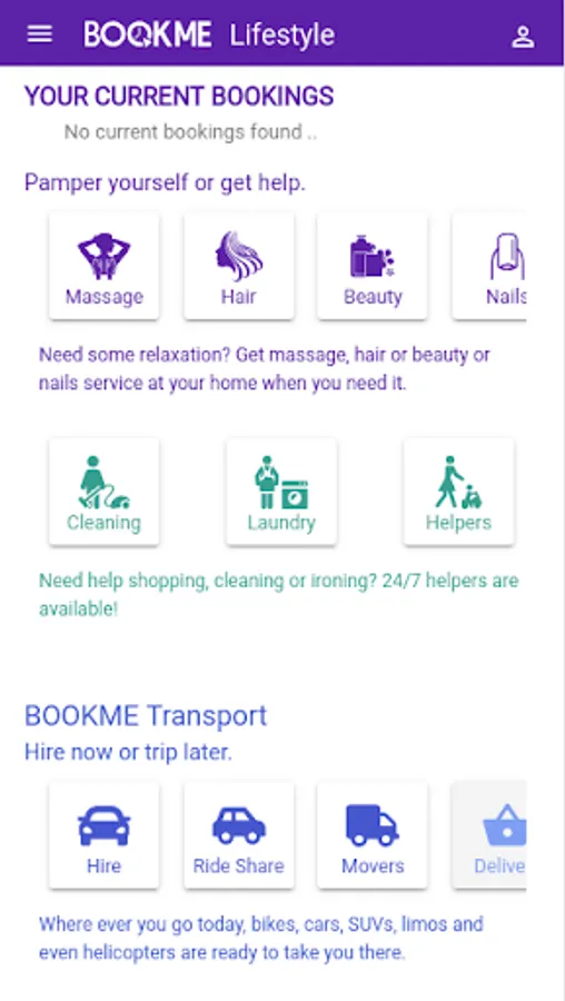We suggest you download 'Bookme Lifestyle Lite' or 'Bookme Transport Lite' instead of this app.