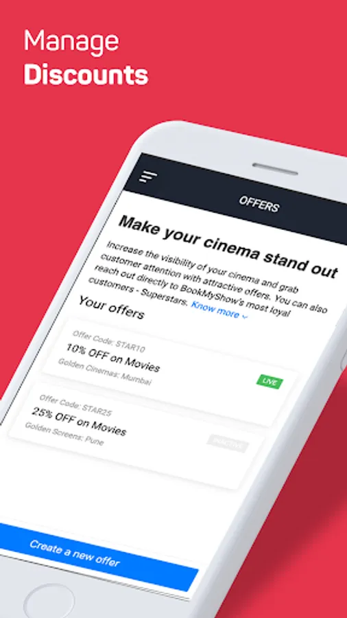 This lightweight app enables the partner to track their ticket sales and revenue real-time based on the bookings received on BookMyShow.