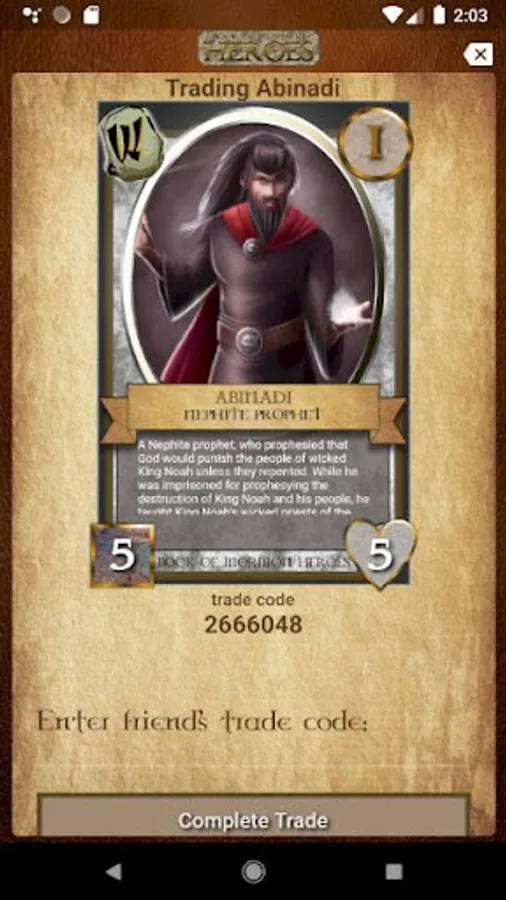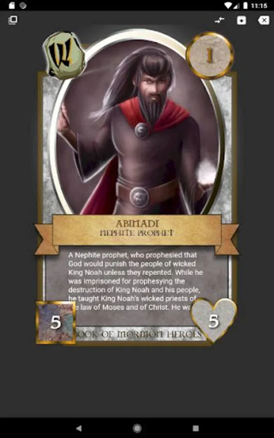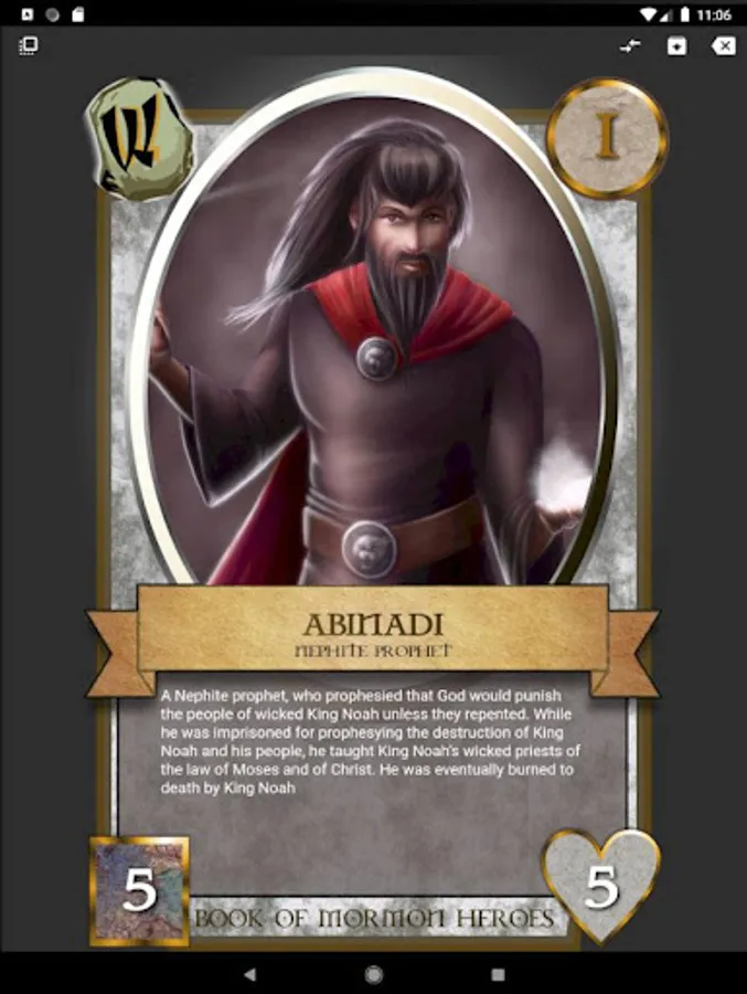 This app brings the characters of the Book of Mormon to life in a way you have never experienced before. Each card shows you a picture of the character, gives details about their life, and lists the scriptures where they can be found. If you get more than one of a card, then trade it with a friend! Once your collection is at legendary level, you can journey on a campaign to take on the villains of the Book of Mormon yourself!
