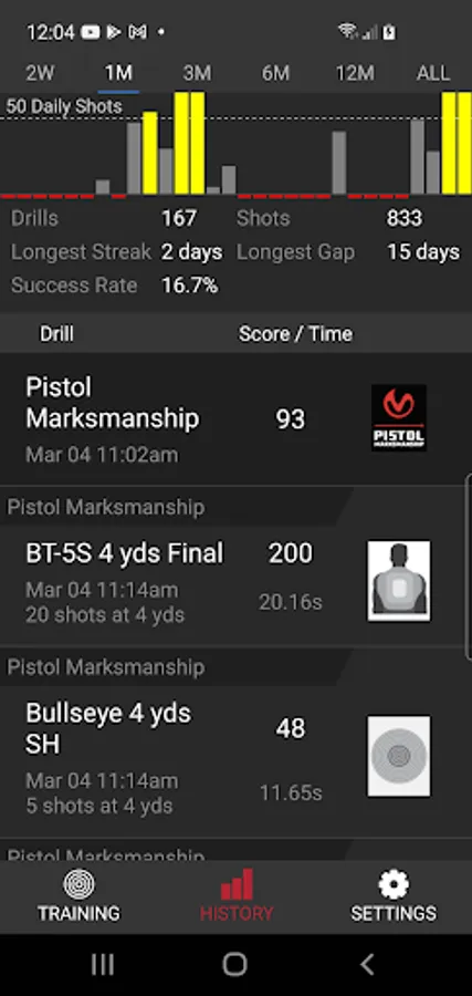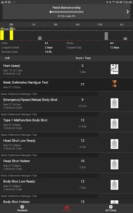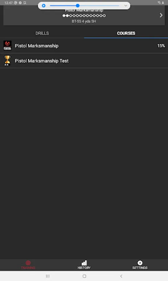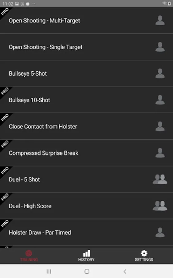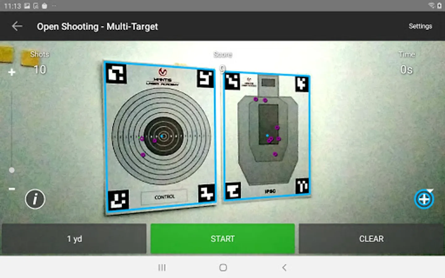 The Mantis Laser Academy app has a variety of drills focused on different aspects of shooting. Some drills require specific smart targets. Other drills work with any smart target. Several drills support multiple targets and allow local competition between shooters.
