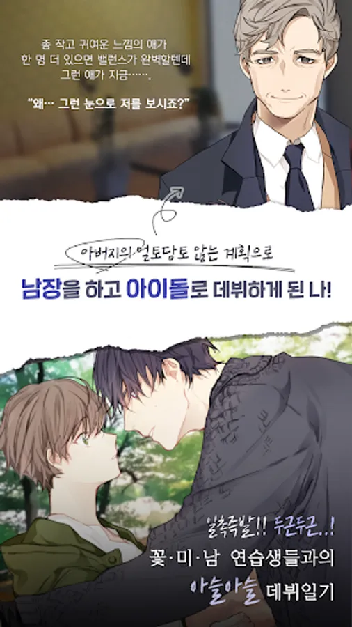 Dressed as a man with the trick (?) of his father, the president of an idol agency