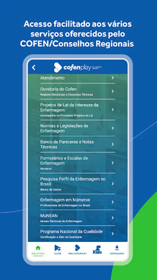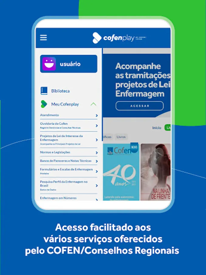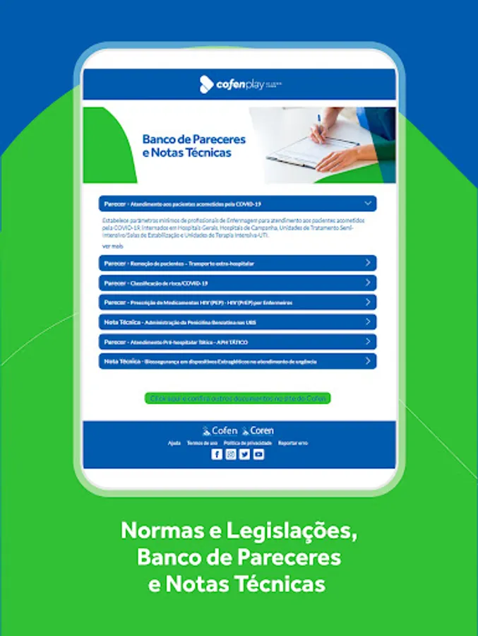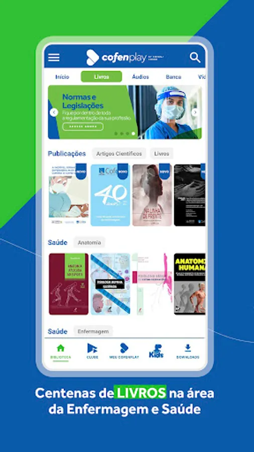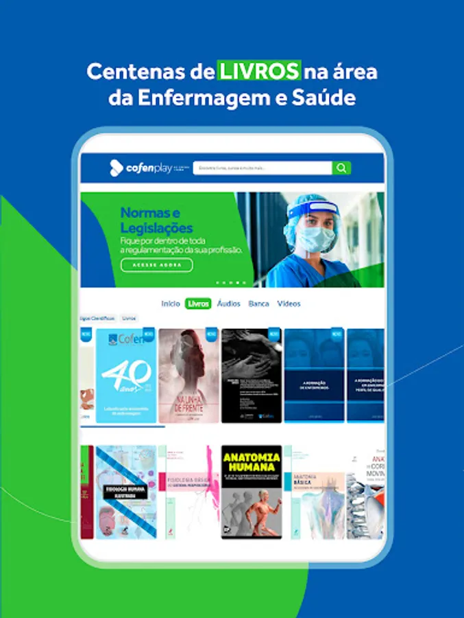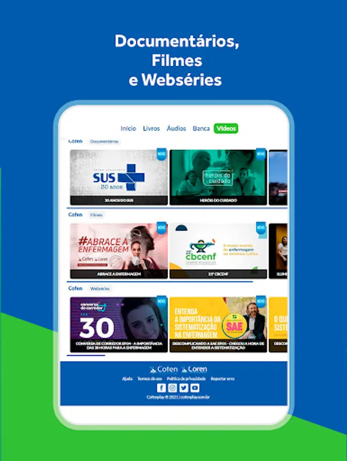 The COFEN System/Regional Nursing Councils presents the platform that will revolutionize the careers of nursing professionals. There are hundreds of BOOKS in the field of nursing and health, NEWSPAPERS and NEWS MAGAZINES, AUDIOBOOKS, PODCASTS, VIDEOS, DOCUMENTARIES, SERIES and SCIENTIFIC MAGAZINES.