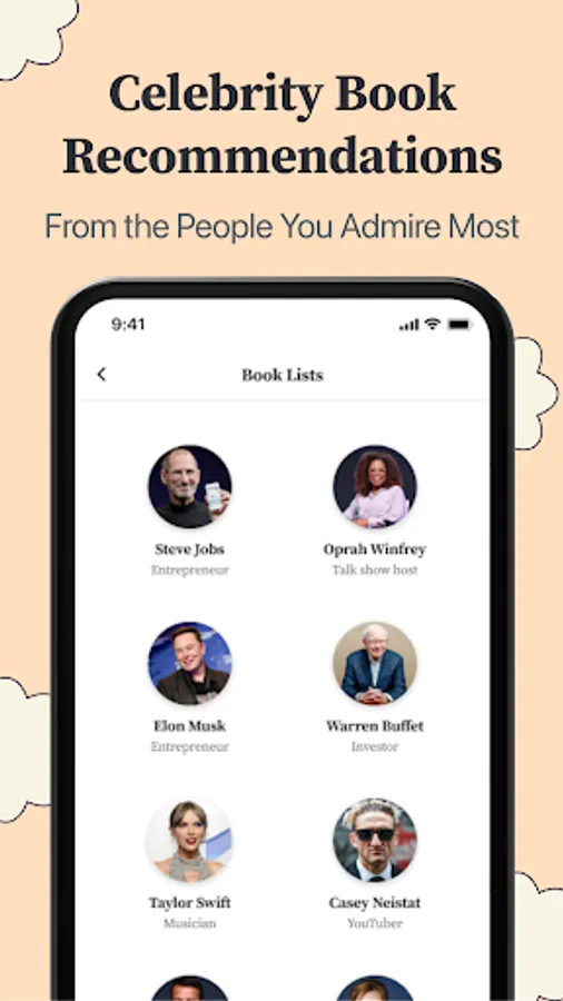 Now, you can access book recommendations from your favorite celebrities and icons. Discover the literary tastes of the people you admire most and explore their curated book lists. From renowned influencers to visionary entrepreneurs, unlock a new realm of reading possibilities by diving into the pages that have captivated their minds.