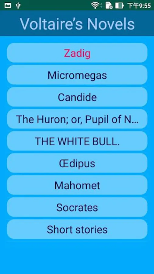 Candide, Zadig, Micromegas, The Huron; or, Pupil of Nature, THE WHITE BULL, Œdipus, Mahomet, Socrates, Short stories