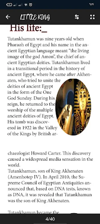 Tut ankha mun is one of the pharaohs of the eighteenth Egyptian family in the history of ancient Egypt, and Pharaoh was Egypt from 1334 BC to 1325 BC. Tutankhamun is one of the most famous pharaohs for reasons that are not related to his accomplishments or wars in which he won, as is the case with many pharaohs; Rather, it is for other reasons that are historically important, the most prominent of which is the discovery of his tomb and its treasures completely without any daman introduction