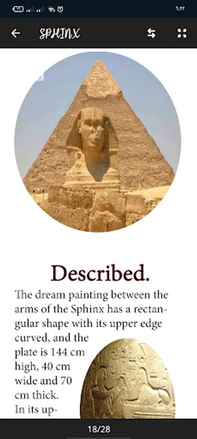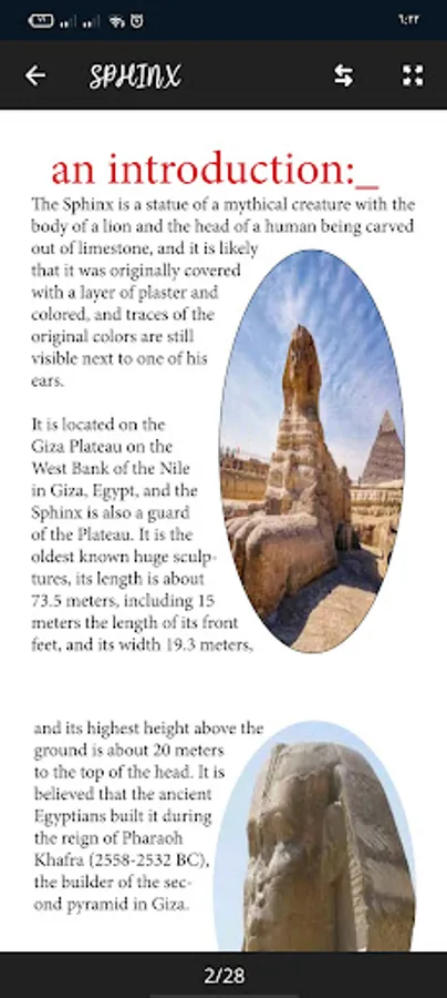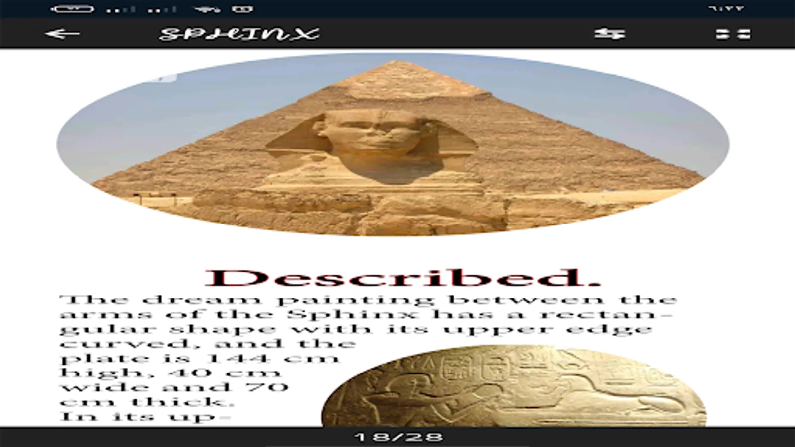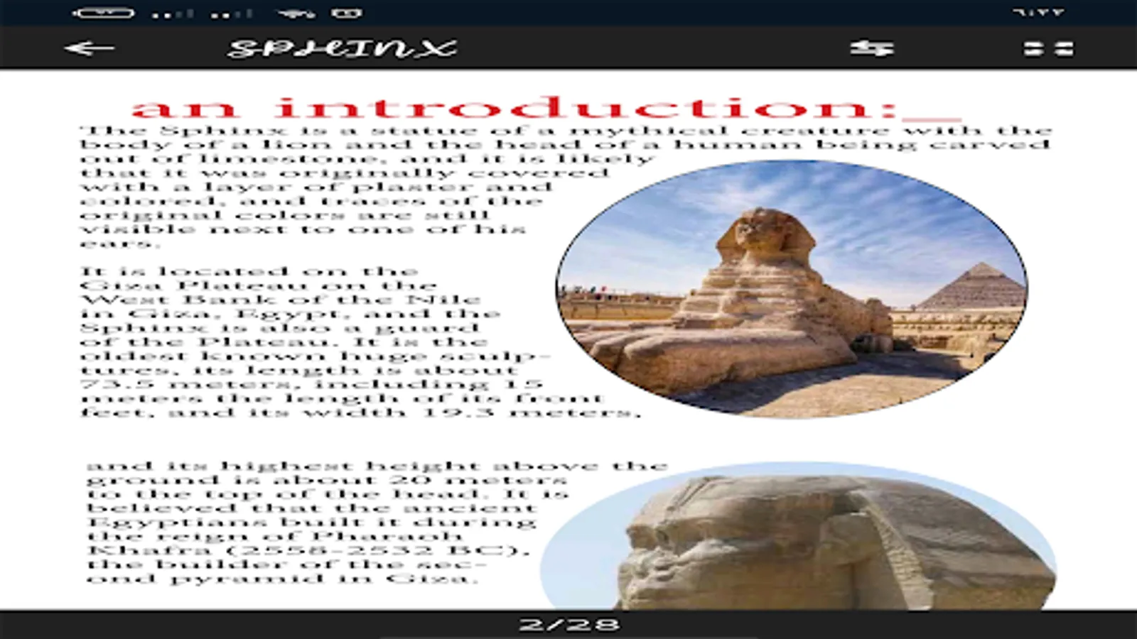 The Sphinx is a statue of a mythical creature with the body of a lion and the head of a human being carved out of limestone, and it is likely that it was originally covered with a layer of plaster and colored, and traces of the original colors are still visible next to one of his ears.