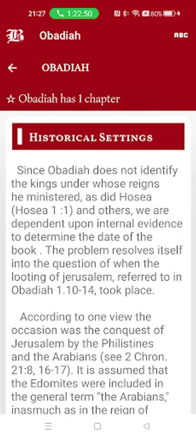 This app provides details on the Title, Authorship, Historical Setting, Theme and Outline of the books of the Bible.