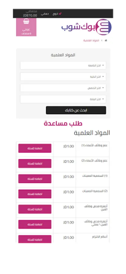 A site specialized in all books, descriptions, explanations, stationery, cards, and all that the university student needs