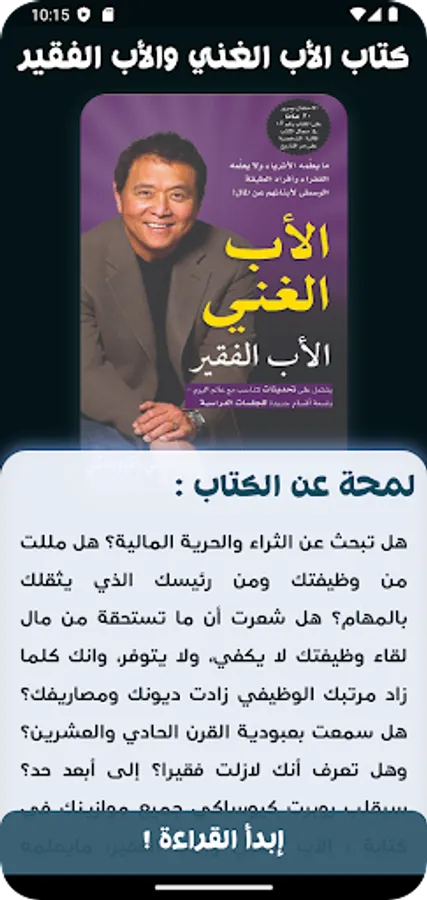 هل تبحث عن الثراء والحرية المالية؟ هل مللت من وظيفتك ومن رئيسك الذي يثقلك بالمهام؟ هل شعرت أن ما تستحقة من مال لقاء وظيفتك لا يكفي، ولا يتوفر، وانك كلما زاد مرتبك الوظيفي زادت ديونك ومصاريفك؟ هل سمعت بعبودية القرن الحادي والعشرين؟ وهل تعرف أنك لازلت فقيرا؟ إلى أبعد حد؟ سيقلب روبرت كيوساكي جميع موازينك في كتابة : الأب الغني والأب الفقير: مايعلمه الأغنياء لابنائهم ولايعلمه آباء الطبقة الوسطى.