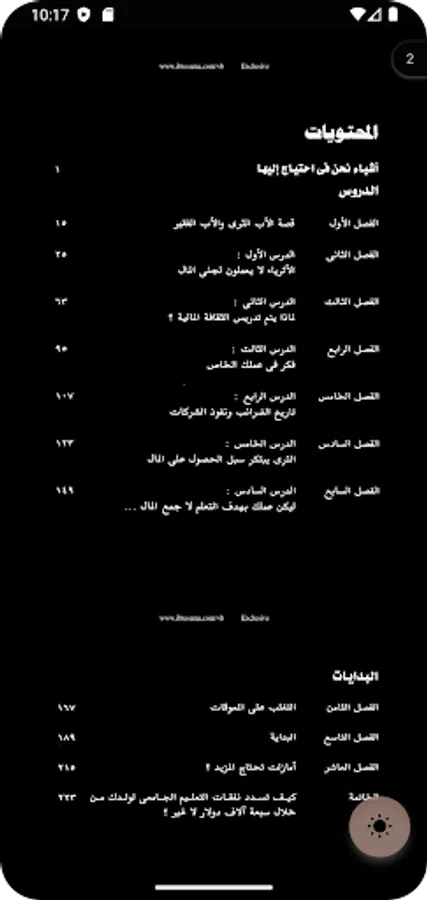 -يمكنك من تغيير الوضع من الوضع العادي الى الوضع الليلي لاراحة العين اثناء القراءة .