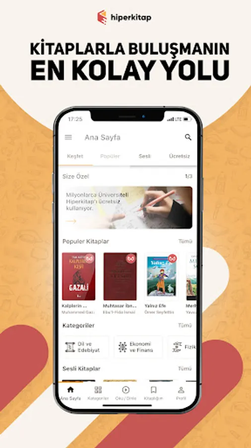 Hiperkitap has over 17,000 Turkish e-books of 300 publications in 28 main topics such as language-literature, history, philosophy, psychology, law, computer, environment, personal development, engineering-technology, economy-finance, medicine and business. and this number continues to increase every day.