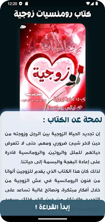 Therefore, this book, which presents the couple with the colors of the arts of romance in the marital nest through innovative ideas, and precious tips that help renewal and innovation from time to time, will restore the lost romance to our lives.