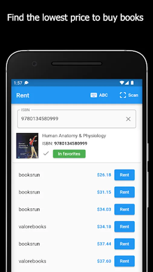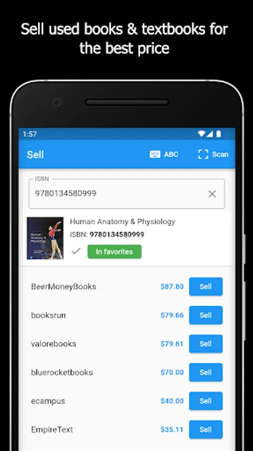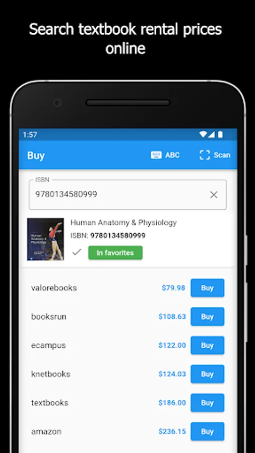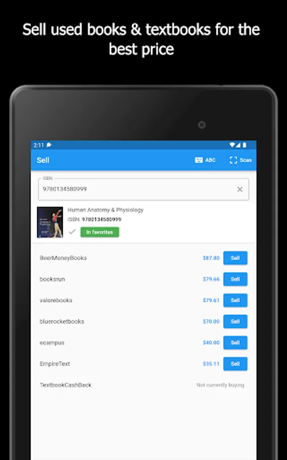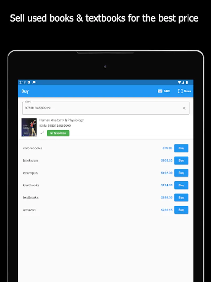 Favorites: If you are scanning books and get a good offer, just tap Add to Favorites, and the app will save that book in a list so you can find it easily later.