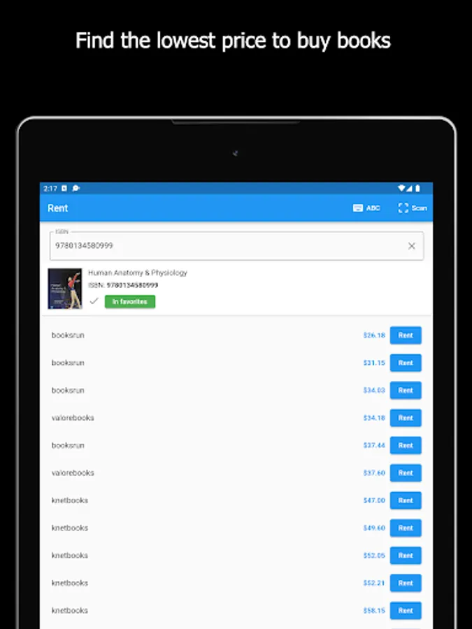 Barcode Scanner: No need to enter ISBNs manually, just tap scan and our in-app barcode scanner will read the ISBN and start searching.