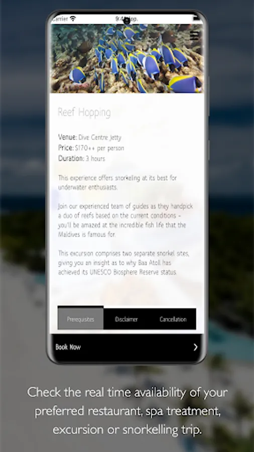 - Perfect your stay by booking restaurant experiences, excursions and activities such as snorkelling, scuba diving or to request to book spa treatments;